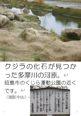 しらべてみると、これは、大きな クジラの かせき だったのです。バスぐらいの 大きさでした。